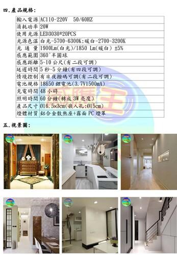 ▼ 品名/編號:SI-606B 20W微波停電感應嵌燈 |