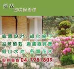 專業於庭園設計、綠化施工、盆景植栽、過濾器買賣、假山水池、各類花木、各類大型盆栽與風格獨特庭木,各種特殊風韻之成品、半成品買賣