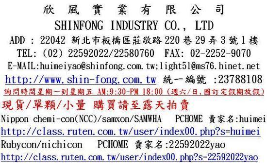 | | 1. | 電容器-電壓:100V,容量:4.7uF-100uF,單顆下標網址,台灣現貨 | | | 2. | 固態電容器-電壓:63V,容量:47uF-150uF,單顆下標網址,台灣現貨 | | | 3. | 固態電容器-電壓:50V,容量:68uF-470uF,單顆下標網址,台灣現貨 | | | 4. | 固態電容-電壓:25V,容量:10uF-1000uF單顆下標網址,台灣現貨 | | | 5. | 固態電容器-電壓:35V,容量:100uF-470uF,單顆下標網址,台灣現貨 | | | |