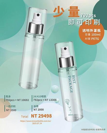 PETGªº²~¥~Æ[¨ã¦³¦p¦P¬Á¼þªº³z©ú«×¡A¦b¤Æ§©«~©Î«O¾i«~²~Åø¥]¸Ëªº»â°ì¤W¦³¥X¦âªº®i²{¡C³o´Ú100ml·f°t¼QÀYªº²Õ¦X¡A¥i¥Î©ó¤Æ§©¤ôµ¥²£«~¡A¥B¥u­n792pcs´N¯à¦L¨ê²£«~¸ê°T¡A¸gÀÙ¤S¹ê´f¡C