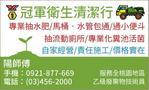 冠軍衛生清潔行,專營:抽水肥、通馬桶、通水管、整理化糞池及化糞池酵素,服務地點:全桃園市,陽師傅,連絡電話:0921877669,03-4562000 |