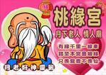 桃緣宮 - 月下老人- 情人廟,安座于民國七十八年,有感世間眾生為情所困,安奉月老星君、月下老人。自安座以來,祈求姻緣男女絡繹不絕,更有許多受到月老眷顧,結成良緣連理之信徒回宮向月老還願。 |
