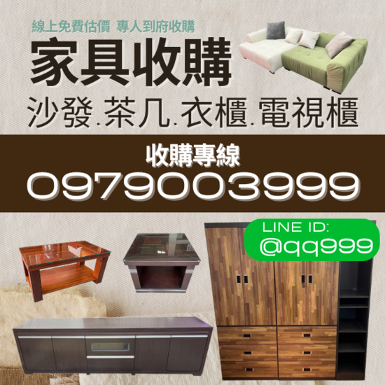 中古家具、二手電器專業收購買賣,在地經營多年,師傅的專業您可以相信,臥室家具、客廳家具、廚房器具、營業用具、大小家電、辦公家具都有收購,只需撥打電話0979003999或是+@qq999即可線上免費估價,我們交易公開透明,一切以現金為主,一手交錢一手交貨,讓您放心處理家裡不需要的家具電器,我們北中南皆有據點,台北、新北、基隆、桃園、新竹、苗栗、台中、南投、彰化、嘉義、雲林、台南、高雄,只要您想賣我們就一定到的了,歡迎各位來電詢問!