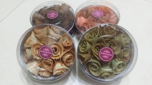 一朵一朵像初綻放的玫瑰花,不僅讓您賞心悅目,口感更是香、酥、脆, 以少油的理念製做出來的蛋捲,不似傳統蛋捲的鬆酥,也沒有煎餅的堅硬,肯定讓您對蛋捲有新概念。