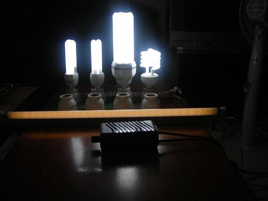 ,市面上多個普通電子麗晶燈泡,及多組普通T5電子燈具長燈管之明暗亮度,和一般