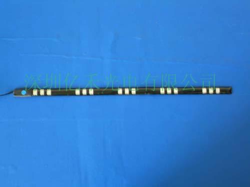 1、長28CM,寬1CM,15顆5050貼片燈,黑色柔性底板;
