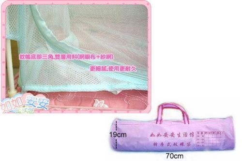 組好後您可以直接放在彈簧床上面.或是床墊搬放進去蚊帳底部.十分方便