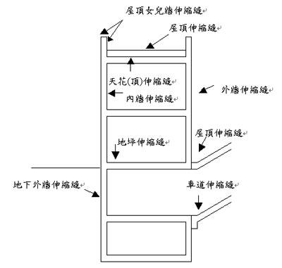 伸縮縫型式有多種,依使用位置可分為屋頂、外牆、地坪、內牆(柱)、天花(頂)等伸縮縫,依蓋板材質分類,則有彈性合成橡膠蓋板及不鏽鋼、鋁合金、銅合金等金屬蓋。適用伸縮縫縫寛,小自2.5cm,大至90cm等各種尺寸。為配合建築物外觀,蓋板表面處理方式及顏色有多種可供選擇。