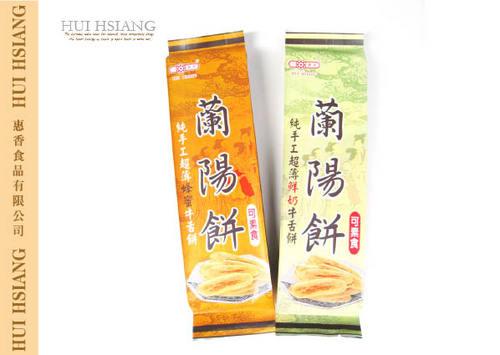| | 1. | 蔬菜蔥餅與紅麴海苔餅 | | | 2. | 桶裝手工蛋捲 | | | 3. | 綜合沙琪瑪(雞蛋,黑糖,海苔) | | | 4. | 牛奶煎餅與牛角蔥餅 | | | 5. | 蘭陽餅~超薄牛舌餅 | | | 6. | 老麵包及大包神仙餅 | | | 7. | 蜜麻花 | | | 8. | 鳳梨餅,太陽餅,老婆餅 | | |
