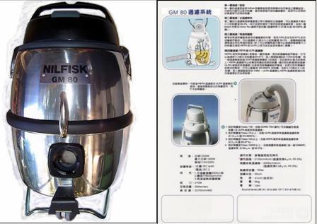 無塵室吸塵器Nilfisk GM80 HEPA 等級 0.3 um 或是 ULPA 等級0.12um 產品售價:$ 35000 元 |