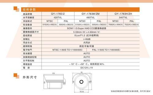 3、內置1/3" SONY CCD,解析 420/480/540/可選。