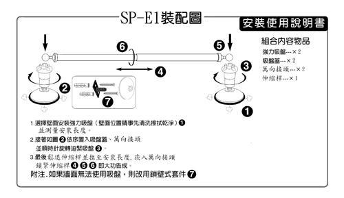 獨特強力吸盤式360度旋轉,無段上下調整專利設計 . ( 亦可替換鎖壁結構 ) . 吸盤有多種尺寸 . 型式亦有多種變化 . 適用於浴室 . 廚房,安裝方便無死角 . DIY自裝,免工具 . 毛巾桿具360度轉向,並可調整長度 . 荷重3KG . 台灣製造專利產品 (made in Taiwan Pat.) . 強力吸盤安裝方法 : 1. 先將吸盤和附著物擦拭乾淨 . 2. 沾少許水在吸盤上。(水能幫助將空氣擠出) . 3. 將吸盤周圍往後拉,並把吸盤中心點頂住,貼於附著物以後,再鬆開吸盤周圍。如此,便能使吸盤緊緊的貼牢而不易脫落。貼心小提醒吸盤經過長時扭曲、磨損、曝曬時,都會降低附著能力,如果脫落可以將吸盤放在熱水中1-2分鐘 . 即可恢復吸盤吸力。 另外附鑽孔配件 ( 適用於各種牆面 ),讓安裝更穩固。 |