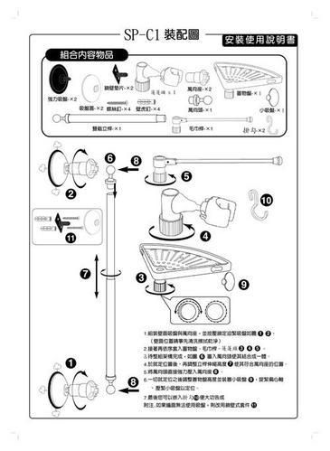 DIY式組裝,免工具,荷重3 kg . 獨特強力吸盤式360度旋轉,無段上下調整專利設計 . ( 亦可替換鎖壁結構 ) . 吸盤有多種尺寸 . 型式亦有多種變化 . 適用於浴室 . 廚房 . 流理台 . 盥洗台等 . 安裝方便無死角 . 強力吸盤安裝方法 : 1. 先將吸盤和附著物擦拭乾淨 . 2. 沾少許水在吸盤上。(水能幫助將空氣擠出) . 3. 將吸盤周圍往後拉,並把吸盤中心點頂住,貼於附著物以後,再鬆開吸盤周圍。如此,便能使吸盤緊緊的貼牢而不易脫落。貼心小提醒吸盤經過長時扭曲、磨損、曝曬時,都會降低附著能力,如果脫落可以將吸盤放在熱水中1-2分鐘 . 即可恢復吸盤吸力。 另外附鑽孔配件 ( 適用於各種牆面 ) . 同樣具有360度旋轉,無段上下調整設計,針對不同壁面,提供多種選擇 . 讓安裝更穩固。 B : 產品配件 : & 置物桿為鋁合金經陽極電鍍處理,不似一般鐵製置物桿,不會生鏽 . 伸縮式設計 . 可依使用空間調整安裝高度 ( 尺寸:3/4" x 7/8" 50 ~ 93 cm ) & 塑膠材質三角置物盤 . 不似木質置物架 . 不怕受潮不會變形 . 且有排水孔 . 不積水 . 清洗容易 . 亦可加裝小吸盤 . 增加整體穩固性 . 不用鑽孔 . 不破壞原有裝潢 . 另附掛勾可吊掛工具或小物 . 旋轉外迫固定式設計 . 可依個人使用習慣 . 自由調整位置使用 . ( 尺寸:25 x25 cm ) & 鋁合金經陽極電鍍處理毛巾桿 . 可掛毛巾、浴巾、個人換洗衣物等 . 旋轉外迫固定式設計 . 可依個人使用習慣 . 自由調整位置使用 . 不使用時還可向上收折 ( 尺寸 : 3/8" x 29 CM ) & 塑膠材質蓮蓬頭座為萬向接頭,可做360度旋轉,外迫固定式設計 . 可依個人使用習慣 . 自由調整位置使用 C : 產品功能 : 居家空間浪費的就是邊邊角角的地方,由於面積不大且擺放太大的層架,可能會影響行走的動線,本產品它獨特的360度轉向式設計,各層架間距或位置可依個人習慣自由調整安裝。能將置物架立於地板 . 檯面或壁面上使用,三層式層架設計,可擺放各式沐浴用品或保養品,層架邊還附有掛勾,可吊掛各種沐浴工具或小物,只要是平整平滑的磁磚面都可以吸附,不必鑽孔、不必破壞原有裝潢,安裝後既不會影響您的動線又可充份利用空間,是一款實用又方便的收納工具 |