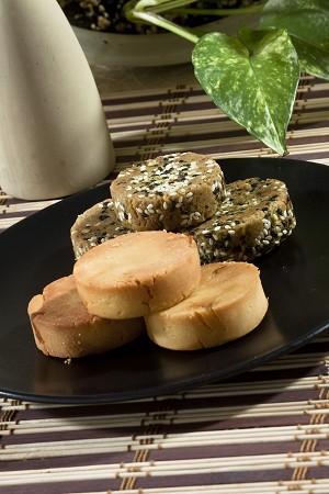 「石蓴」深層水培養而成。本草綱目記載石蓴味甘具有分解脂肪…等療效對健康有很大的幫助。「翡翠石蓴」鳯梨酥,採用天然石蓴加上土鳯梨天然果酸,融合成細緻爽口內餡,進口法國頂級奶油與低溫殺菌蛋液、鮮奶油攪拌而成,醒麵後以芝麻製成外皮以最佳黃金比例手工成型、高溫烘焙,清新爽口不甜膩。