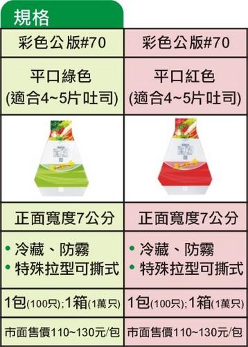 ▼ 品名/編號:三明治袋*平口#70 紅&綠色(100只/包) |
