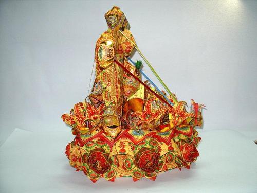 九轉壽生蓮花紙製成,全船實心以台灣製造金紙材質的船體(非一般普通素材金紙)。用雙手慢慢摺疊設計手工製成的,裡面滿有個人的愛心、用心跟細心!船前後加入五路財神金元寶、招財寶、黃金小元寶、七朵蓮花、大小補運金、福祿壽元寶,用於神明祝壽,平常想求得事業正財及偏財可請訂製一台(如士農工商事業體系、開店面、加盟店、業務等等..)請求主神明慈悲作主,渡化功德轉變個人磁場,進而補運改運及招財之用,消除怨念的債主、祈求出入平安。
