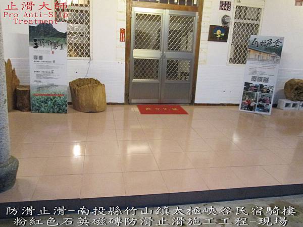 199南投縣竹山鎮太極峽谷民宿騎樓粉紅色石英磁磚防滑止滑施工工程 南投縣竹山鎮太極峽谷民宿騎樓粉紅色石英磁磚防滑止滑施工工程