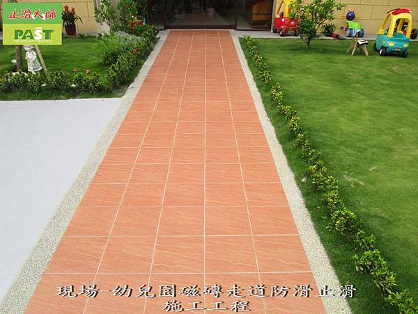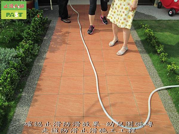 確認止滑防滑效果-幼兒園磁磚走道防滑止滑施工工程