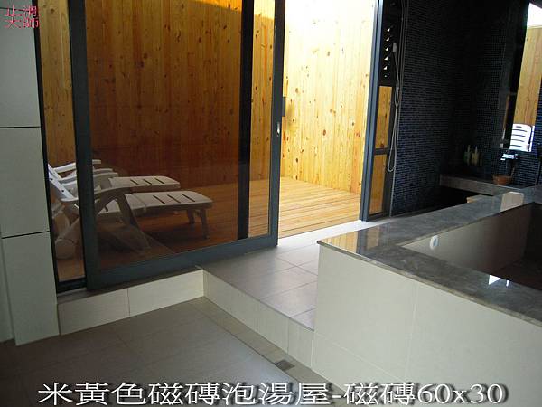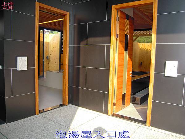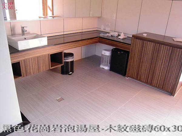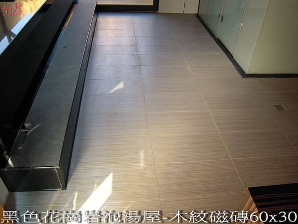 黑色花崗岩泡湯屋-木紋磁磚止滑係數.41-施工完-防滑止滑