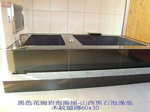 黑色花崗岩泡湯屋-山西黑石泡澡池木紋磁磚-防滑止滑