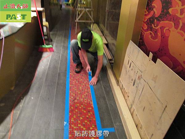 352台中市西屯區牛排館餐廳用餐區走道玻璃馬賽克地面止滑防滑施工工程 台中市西屯區牛排館餐廳用餐區走道玻璃馬賽克地面止滑防滑施工工程