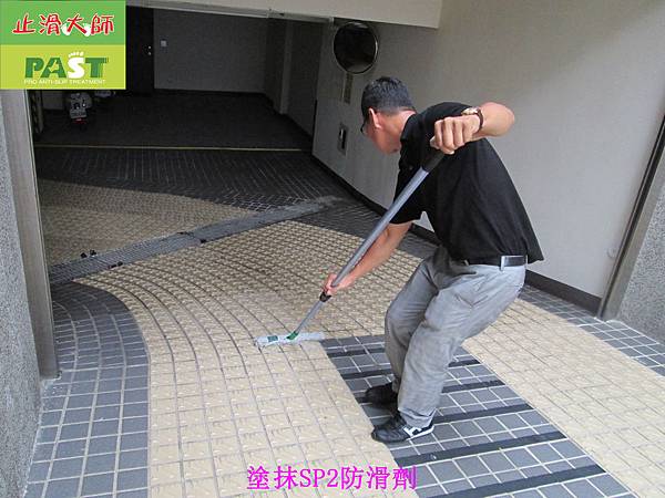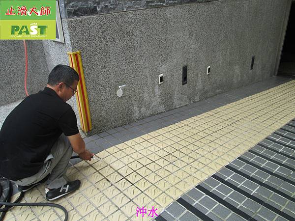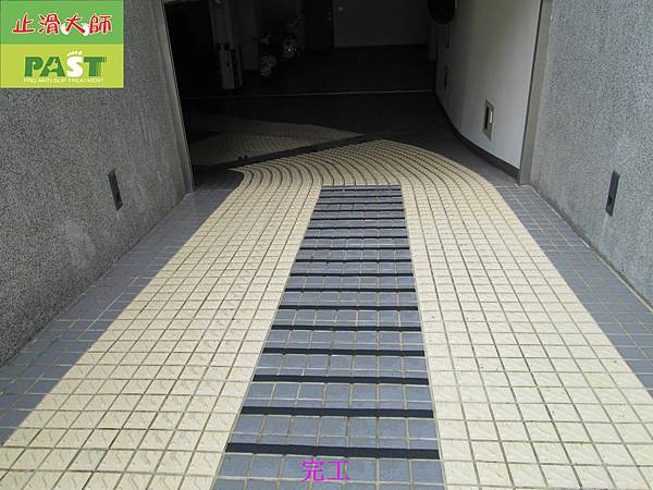 484-台中市社區大樓車道防滑磚-石英磚地面止滑防滑施工工程
