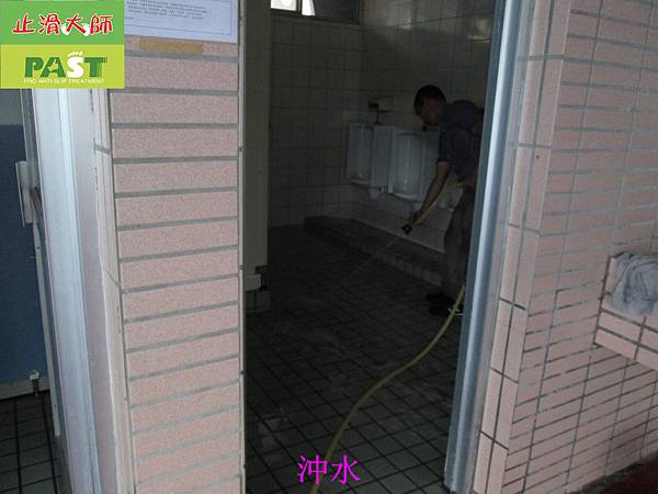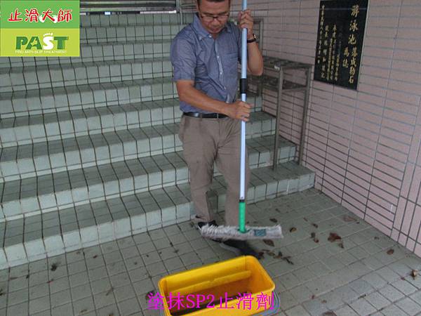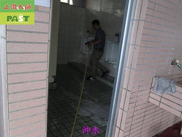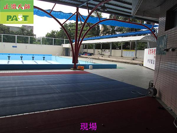 486-國立高中游泳池內更衣室-洗澡沐浴間-廁所洗手間-樓梯石英磚地面止滑防滑施工工程-相片