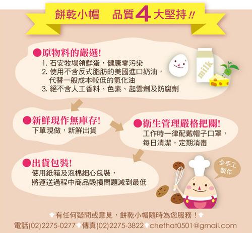 ■嚴選石安牧場的領鮮蛋製作烘焙,不加任何一點水、人工香料及防腐劑,盡請安心食用。
