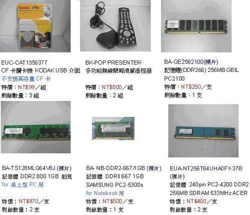 ![電腦週邊商品視訊,記憶體,顯示卡,遙控器]() |
