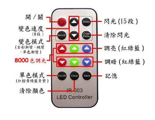 • 變色模式各有8段速度可調整,速度可以記憶保存.