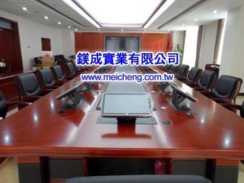 觸控液晶螢幕電動升降系統是針對多元需求之會議室所設計。在召開一般會議時,可將觸控液晶螢幕降至桌面內,使桌面平整美觀;當召開多媒體會議時,則可依據需求,單獨、分組或全部升起,利於進行多媒體訊息的顯示,包括會議內容、資訊提示、影像資訊等。
