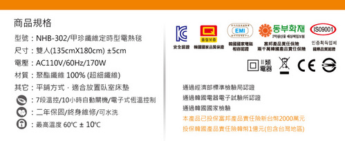 ![甲珍恆溫安全電熱毯NHB-302]() |