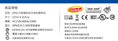 ▼ 品名/編號:美國百年BIDDEFORD電熱毯OTG-T |