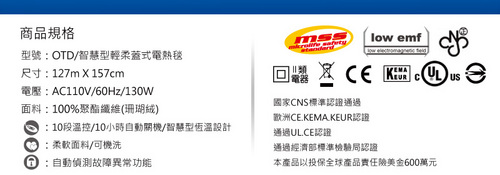 ▼ 品名/編號:美國百年BIDDEFORD電熱毯OTD-T |