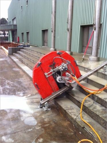 鋸片旋轉方向可遙控且容易改變 這樣切割時甩出的水可以控制在期望的方向 ,确保灰漿按希望的方向疏散。 對稱的导軌和機架底座可實現從導軌两側切割