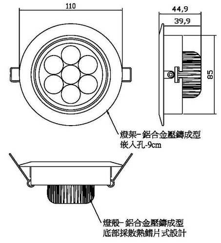 本體:鋁合金高溫高壓注塑一體成型解熱傳輸快,