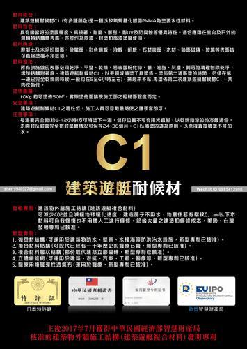 1.建築遊艇耐候材C1 (有多種顏色)是一種以矽氧烷基化樹脂為主要成份的材料。