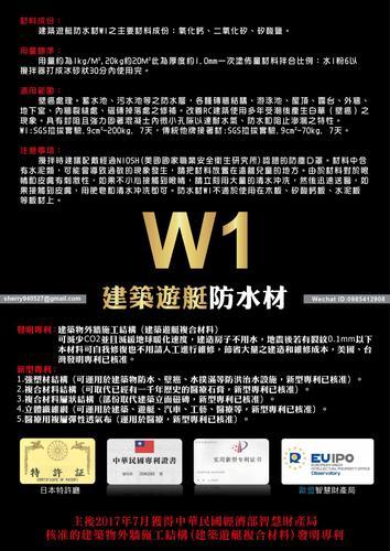 1.建築遊艇防水材W1之主要材料成份:氧化鈣、二氧化矽、矽酸鹽。