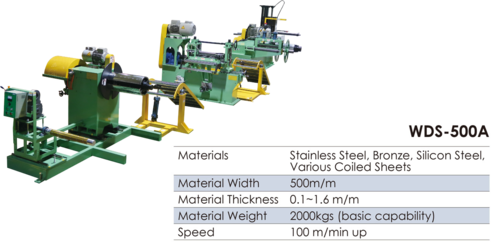 分條機是用來將寬幅成捲板材分割成為多捲窄幅的產品。暐德精密工業有限公司分條機的設計開發工程是以使用者的角度出發,並以滿足客戶需求。提高生產力,機台具備操控易使性的人機介面、切割精密度一致性等為主要分條機開發目標。 暐德精密工業有限公司產制的分條機,是以滾切法來快速分條裁切,此法是將分條刀以上下各一刀,在上刀與下刀相臨的刀刃緊接來切斷,滾切速度快,平均每分鐘分條長度可達60公尺至150公尺。 WEIDER的工程師具有現場經驗並了解分條切割系統的細節,能開發出高品質的工具和分條切割系統,並將這些系統最佳化地整合到切割和製造過程中。針對不同專案需求,我們也能為客戶製作特殊寬度的分條機。