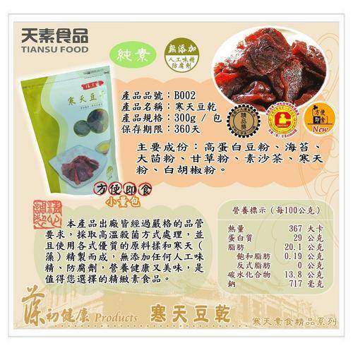 | | 1. | 【天素】台灣豆乾〔厚片川燒味〕 | | | 2. | 【福岩屋】寒天辣肉干 | | | 3. | 【福岩屋】寒天香筋 | | | 4. | 【福岩屋】寒天豆干 | | | 5. | 【福岩屋】寒天藻絲 | | | 6. | 【福岩屋】寒天邊條干 | | | 7. | 【福岩屋】寒天素蹄 | | | 8. | 【福岩屋】寒天素肉酥 | | |