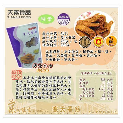 | | 1. | 【天素】台灣豆乾〔厚片川燒味〕 | | | 2. | 【福岩屋】寒天辣肉干 | | | 3. | 【福岩屋】寒天香筋 | | | 4. | 【福岩屋】寒天豆干 | | | 5. | 【福岩屋】寒天藻絲 | | | 6. | 【福岩屋】寒天邊條干 | | | 7. | 【福岩屋】寒天素蹄 | | | 8. | 【福岩屋】寒天素肉酥 | | |