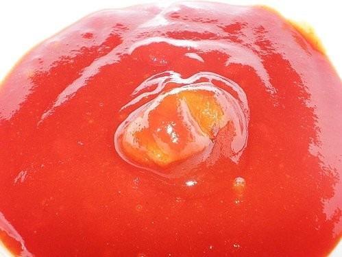 **茄紅多多 ** 的製程: 紅熟蕃茄--熱破碎--榨汁過濾--濃縮--調合梅汁.果糖. --滅菌--充填