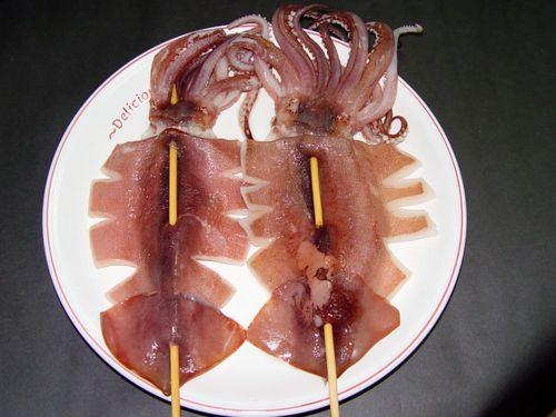 串燒魷魚.整尾原料未殺.清肚未剖48生串魷魚.殺青剖開魷魚.烤肉食材..