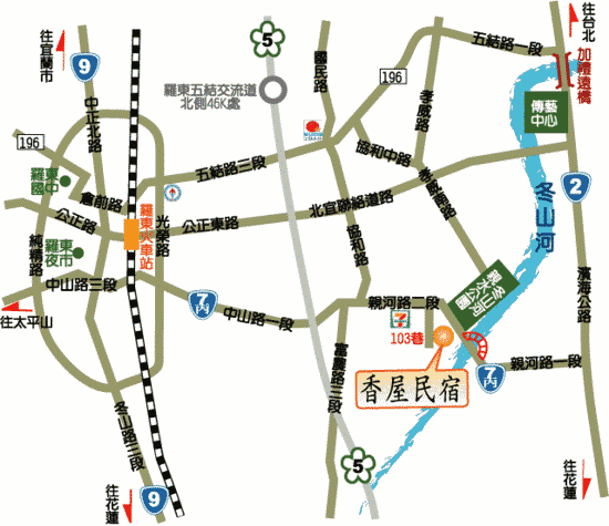 步行冬山河約二分鐘路程,這沒有都市的快步調及擁擠,趕緊卸下繁重的生活壓力,帶著一顆輕鬆的心情來到恬靜的香屋,坐在戶外的露天桌椅上,欣賞絢麗多姿的大自然風光,享受芬多精的洗禮及愜意的渡假生活。 |