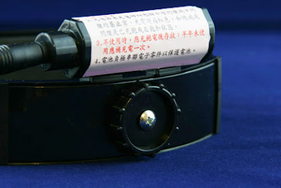 後方頭圈大小旋轉可調式頭帶設計,耐用可靠,上方為固定式鋰電池盒。