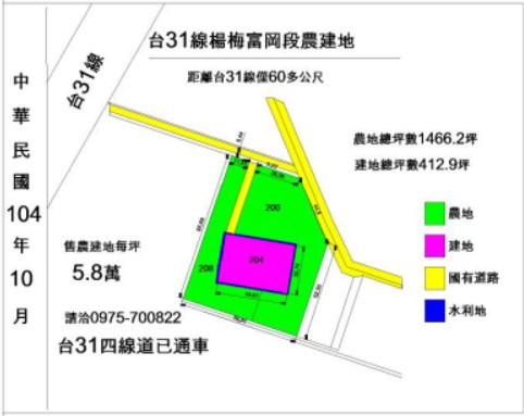 2. 土地面積:甲建~412.9平 農地~1466.2坪