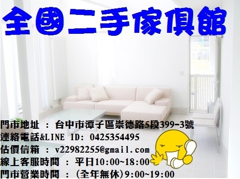 二手傢俱 (沙發/茶几/床組/衣櫃/餐桌椅/書桌椅/書櫃)