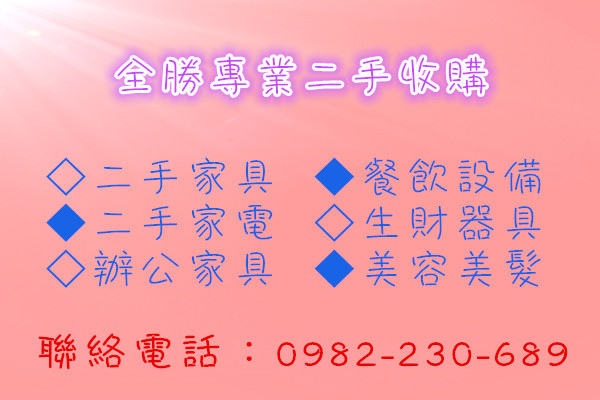 ◆服務項目◆收購任何狀況良好的二手商品,例如客廳家具、臥室家具、大型家電、生活家電、廚房電器、辦公家具、辦公設備、美容美髮、餐飲設備、營業用設備、3C產品、古董精品、庫存商品、倒店貨、等。