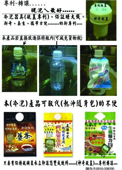 十一、本產品可以分開及結合包裝販賣,利潤相對提高,攜帶方便,只要有礦泉水,想喝飲料均可自行調泡。