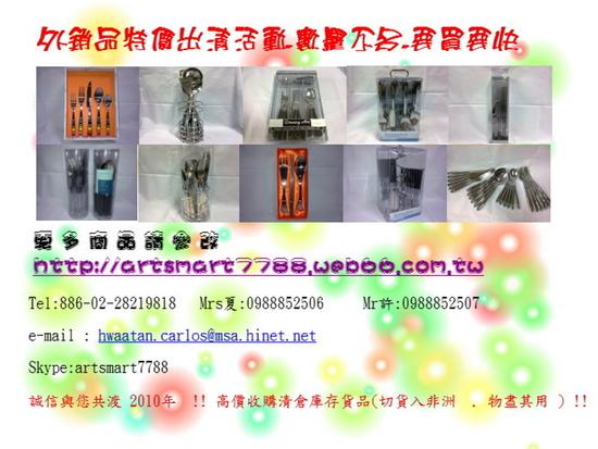 本公司有外銷出口之高級餐具組合包,在台灣舉辦特賣活動,詳請請看本網站新品介紹或[餐具廚房]頁籤